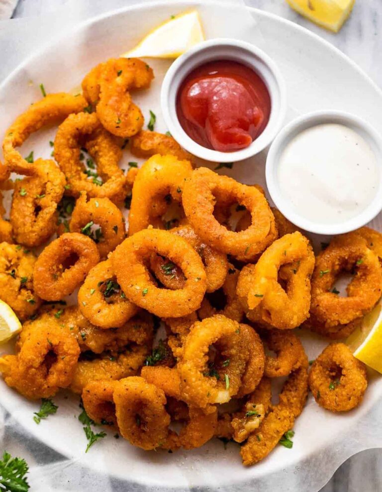 Cheese, Dory, Squid, Shrimp, Olive Oil, Garlic, Chili Flakes, Oregano.